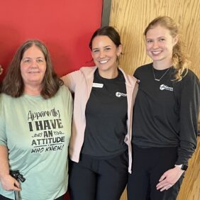 “I have been coming to the Bellevue clinic for 4 years, and they go above and beyond. I love how friendly and understanding they are. They answer my questions and explain things so that I can make the best choices for my needs.” Alecta F., Bellevue Patient with Hannah Wooden, PTA, and Melanie Jones, PT, DPT
